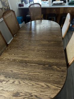 Solid Oak Dining Table 6 Chairs Removable Leaf Also Has Table Protection Pad$225Victorville, CA