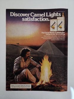 This image is a vintage advertisement for Camel Lights cigarettes, from the late 1970s$7Sound Beach, New York