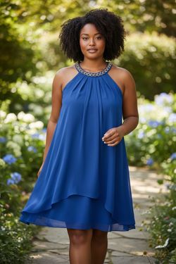 Elegant Blue Beaded Halter Dress | Size 20 | Flowy & Flattering$50Wheeling, IL