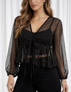 π€ Hesperus Black Sheer Blouse with Gold Dots β Tie Front$29Wheeling, IL