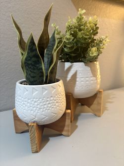 Flora Bunda Mid-Century ceramic planters on wood stand$25Santa Ana, CA