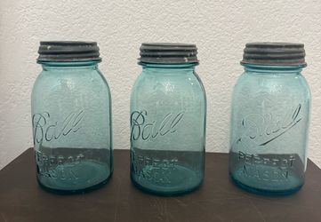 Old, Blue Ball Jars. Set Of 3. Ceramic Inside Lids. $50Chandler, AZ