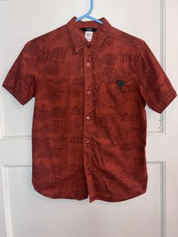 Guess Orange Short Sleeve Button Down Shirt With Black Triangle Pattern$5Bakersfield, CA
