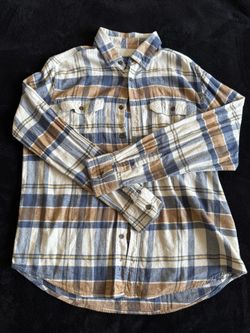 Size Medium Mens buttoned up white/beige/blue plaid flannel$4Corona, CA