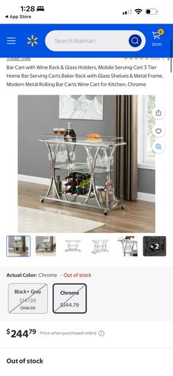 Bar Cart with Wine Rack & Glass Holders, Mobile Serving Cart 3 Tier Home Bar Serving Carts Baker Rack with Glass Shelves & Metal Frame, Modern Metal R$60Fontana, CA