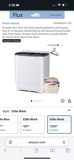 Portable Mini Twin Tub 32Lbs Washing Machine with Drying Rack & 10 Hangers, Washer(20Lbs) and Spinner(12Lbs) Combo with Timer Knob, Compact Semi-autom$100Fontana, CA