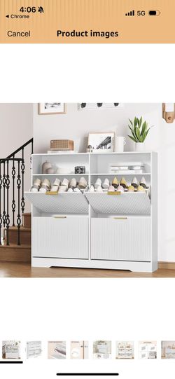 Shoe Storage Cabinet, Freestanding Shoe Organizer with 4 Flip Drawers and 2 Compartments, Modern Fluted Storage Cabinet with Hooks, for Entryway, Foye$80Fontana, CA