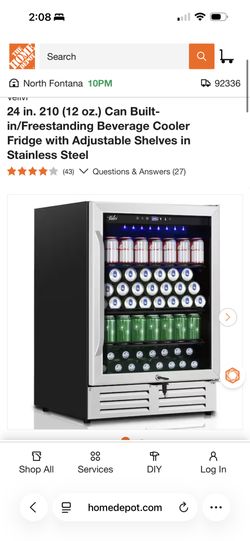 24 in. 4.9 cu. ft. Built-in/Freestanding Indoor/Outdoor Beverage Refrigerator for 186-Cans (Glass Door)$150Fontana, CA