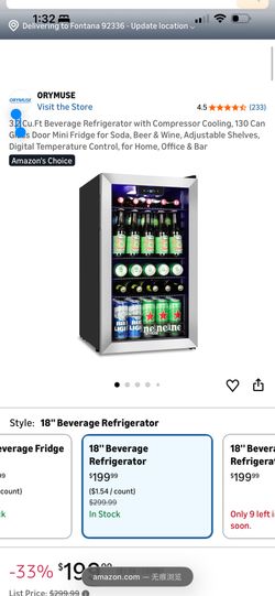 3.2 Cu.Ft Beverage Refrigerator with Compressor Cooling, 130 Can Glass Door Mini Fridge for Soda, Beer & Wine, Adjustable Shelves, Digital Temperature$120Fontana, CA