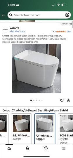 Smart Toilet with Bidet Built In, Foot Sensor Operation, Elongated Tankless Toilet with Automatic Flush, Dual Flush, Heated Bidet Seat for Bathrooms$260Fontana, CA