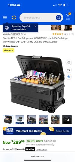 Simzlife 12 Volt Car Refrigerator, 80QT(75L) Portable RV Car Fridge with Wheels, 0℉~68℉, 12/24V DC & 110-240V AC, Black$100Rialto, CA
