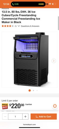 13.5 in. 80 lbs./24H. 36 Ice Cubes/Cycle Freestanding Commercial Freestanding Ice Maker in Black$120Fontana, CA