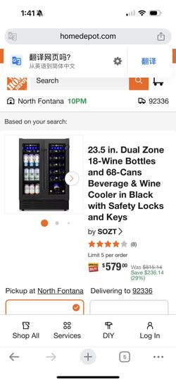 23.5 in. Dual Zone 18-Wine Bottles and 68-Cans Beverage & Wine Cooler in Black with Safety Locks and Keys$180Fontana, CA