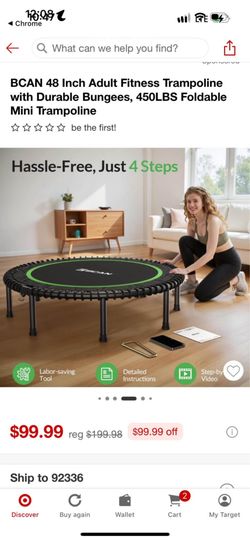 48inch Adult Fitness Trampoline With Durable Bungees 450 Lbs Foldable Mini Trampoline $30Fontana, CA