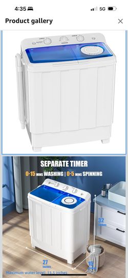 Portable Mini Twin Tub 22Lbs Washing Machine with Drying Rack & 10 Hangers, Washer(13Lbs) and Spinner(9Lbs) Combo with Timer Knob, Compact Semi-automa$80Fontana, CA