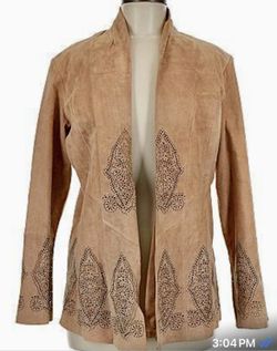 New Vintage ( Never Used ) Margaret Godfrey suede leather jacket in a tan color with laser-cut patterns. $55Laud Lakes, FL