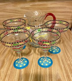 Margarita Pitcher With 4 Glasses Set , Plastic Hand Painted $30Laud Lakes, FL