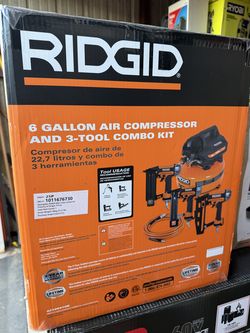 RIDGID 6 Gal.150 PSI Electric Air Compressor with 25 ft. Hose, 18 & 16 brad nailer 18 Finish stapler$245Duluth, GA