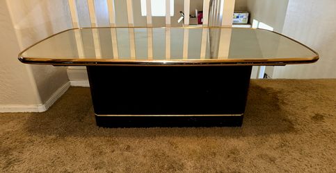 Postmodern Black Lacquered Mirror Top Coffee Table with Gold Trim$50Litchfield Park, AZ