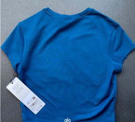 NWT Alo yoga Alosoft Crop Finesse Short Sleeve Eclipse Blue Size M Limited$64Baldwin Hills, CA