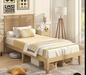 Twin Size Bed Frames with Rattan Headboard, Boho Solid Wood$170Palmdale, CA