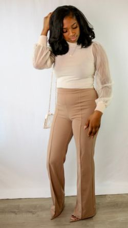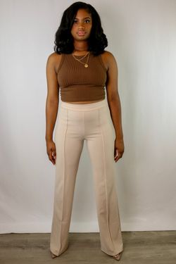 Imani | Medium Beige High Waist Wide Leg Flare Pintuck Pants$30Washington, DC