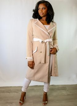 Olivia | Small Beige Long Double Breasted Gold Button Thigh Length Trench Coat$42Washington, DC
