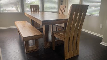 Scandinavian design Wood dining table and 4 chairs with bench$1,400Lyon Charter Township, MI