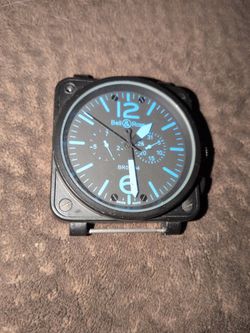 Bell & Ross Chronograph watch w/ a black carbon-coated steel case, black dial, & blue luminous indices & hands. $475Las Vegas, NV
