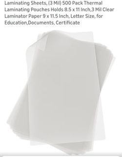 Laminating Sheets, (3 Mil) 500 Pack Thermal Laminating Pouches Holds 8.5 x 11 Inch,3 Mil Clear Laminator Paper 9 x 11.5 Inch, Letter Size, for Educati$20Chino, CA