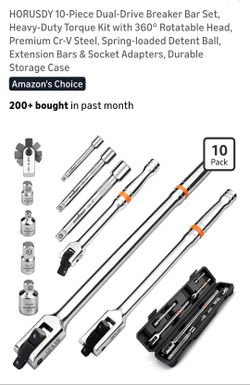 HORUSDY 10-Piece Dual-Drive Breaker Bar Set, Heavy-Duty Torque Kit with 360° Rotatable Head, Premium Cr-V Steel, Spring-loaded Detent Ball, Extension $20Chino, CA