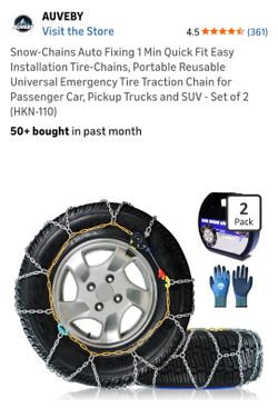 Snow-Chains Auto Fixing 1 Min Quick Fit Easy Installation Tire-Chains, Portable Reusable Universal Emergency Tire Traction Chain for Passenger Car, Pi$70Chino, CA