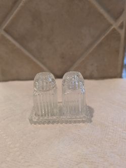 vintage clear cut glass salt and pepper shakers with a matching tray$15Las Vegas, NV