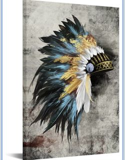 36in X 24in sechars Native American Wall Art Feathered Chiefs Headdress Painting on Canvas Vintage Decorative Indian Artwork Ready to Hang$25Upland, CA