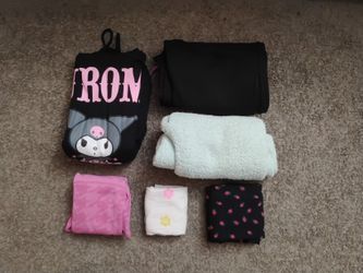6 For 1-1 Kuromi Hooded Sweater. 1 Hocus Pocus Flared Sweatpants, 1 Mint Flared Pants, 1 Active Top, 1 Floral Tank, 1 Dress Size Youth M/Juniors XS$15Rossmoor, CA
