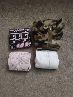 4 For 1-1 Powerpuff Sweater. 1 Camouflage Quarter Zip Sweater, 1 White Zip Up Sweater, 1 Barbie Sweater Size Youth XL/Juniors Small$15Cypress, CA