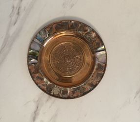 Vintage Mexican Copper Aztec Calendar Plate with Abalone Shell Inlay Wall Art $39Le Roy, NY
