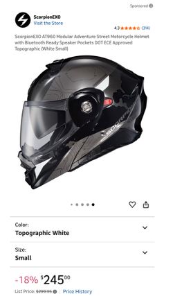 ScorpionEXO AT960 Modular Adventure Street Motorcycle Helmet with Bluetooth Ready Speaker Pockets DOT ECE Approved Topographic (White Small)$200Mesa, AZ
