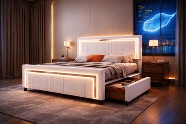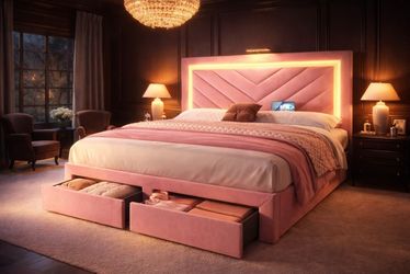 MATTRESS + King Bed with Led Lights and 2 Drawers-All New $370Jacksonville, FL