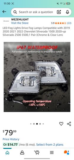 LED Fog Lights Drive Fog Lamps Compatible with 2019 2020 2021 2022 Chevrolet Silverado 1-up Silverado 2,1 Pair (Chrome & Clear Lens$40West Springfield, MA