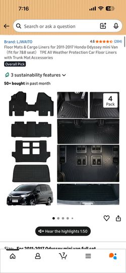 LJWAITO All Weather Floor Mats & Cargo Liner for 2011-2017 Honda Odyssey (7/8 Seat)$60Phoenix, AZ