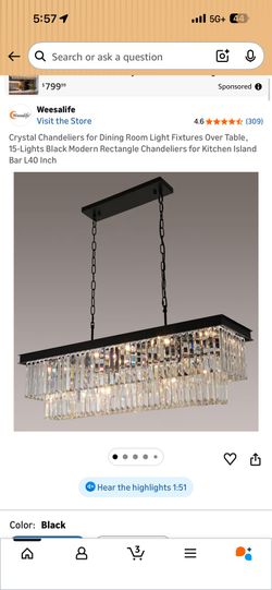 Weesalife Black Modern Crystal Chandelier 15-Lights 40 Inch$100Phoenix, AZ