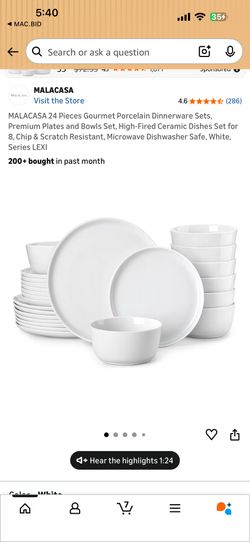MALACASA 24 Piece White Porcelain Dinnerware Set for 8 New in Box$55Phoenix, AZ