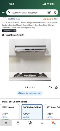 IKTCH 30 Inch Under Cabinet Range Hood with 900-CFM,$80Phoenix, AZ