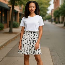 Vintage Jessica White & Black Floral Pannelled ruffle tulip hem skirt size 4 $30Lancaster, PA