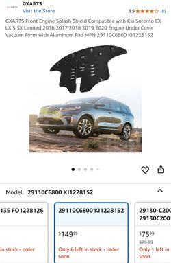 GXARTS Front Engine Splash Shield Compatible with Kia Sorento EX LX S SX Limited 2016 2017 2018 2019 2020 Engine Under Cover Vacuum Form with Aluminum$80Sacramento, CA