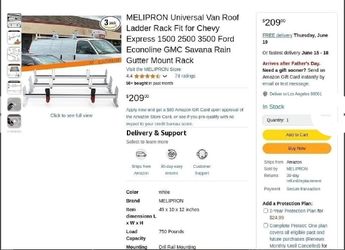 Melipron 3 Crossbars Van Roof Ladder Racks for Chevy Express, Ford E-series, GMC Savana$100Sacramento, CA
