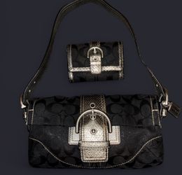Coach Signature Leah Large Shoulder Tote Bag Black/White 15135 Handbag Purse$180Santa Ana, CA