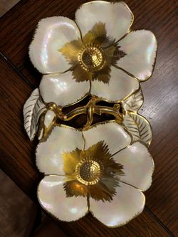 vintage Neocraft by Everlast gold-toned anodized aluminum trays featuring a morning glory flower pattern. $60Lancaster, NY