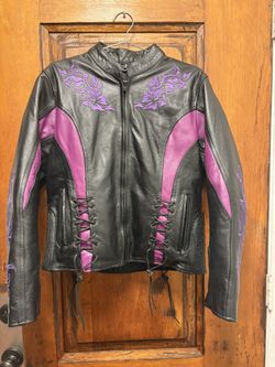 Xelement Ladies Medium S Gemma Black Purple Leather Motorcycle Embroidered Jacket$200Lancaster, NY